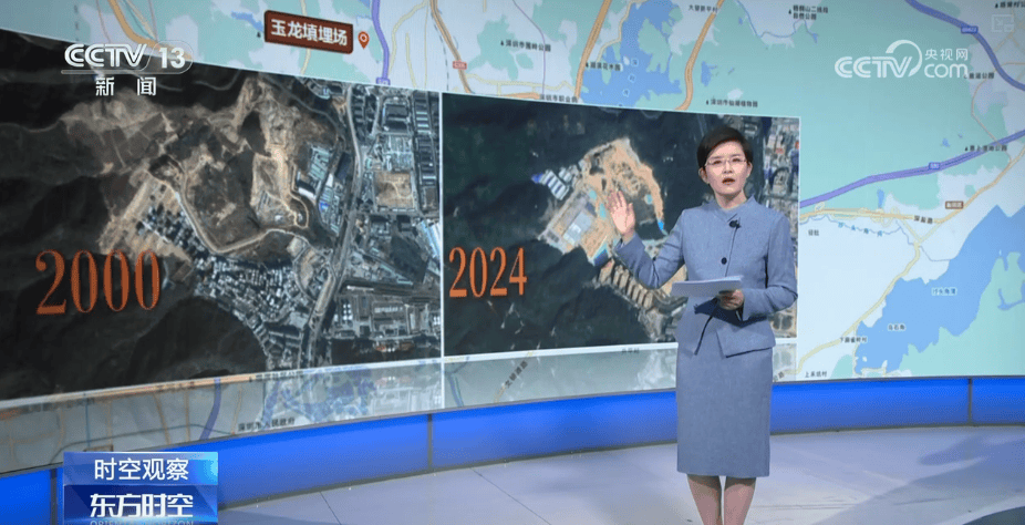 这是我们找到的卫星地图,正中就是玉龙填埋场——这次事件的主角。翻看过去20多年的卫星图,这里始终是单一色调,可2024年出现了变化,部分土壤,到2025年,这片区域已然被绿色覆盖。这里要进行怎样的“城市更新”?记者赶赴现场。