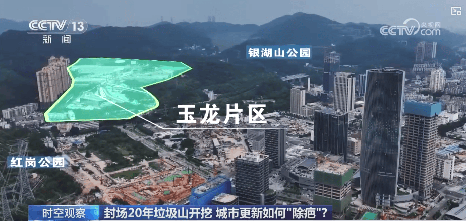 我们从卫星地图上可以看到,这片区域在最近出现了变化,这是因为2024年当地正式启动了玉龙填埋场环境修复工程。那么,当地为什么要将封场20年的垃圾山挖开呢?咱们看看它的位置就明白了,随着城市的发展,玉龙填埋场已经从早年的荒郊野岭,变成了眼下的城市中心区域。工作人员表示,城市在扩张,技术也在发展,正是由于现在的技术条件能够达到根治这个“顽疾”的水平,当地才启动了全量开挖搬迁治理。