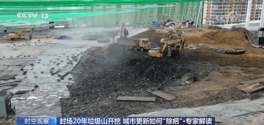 要处理这么一个巨大的垃圾填埋场,并不是件容易的事,记者在现场看到,开挖区域旁边就有居民楼。